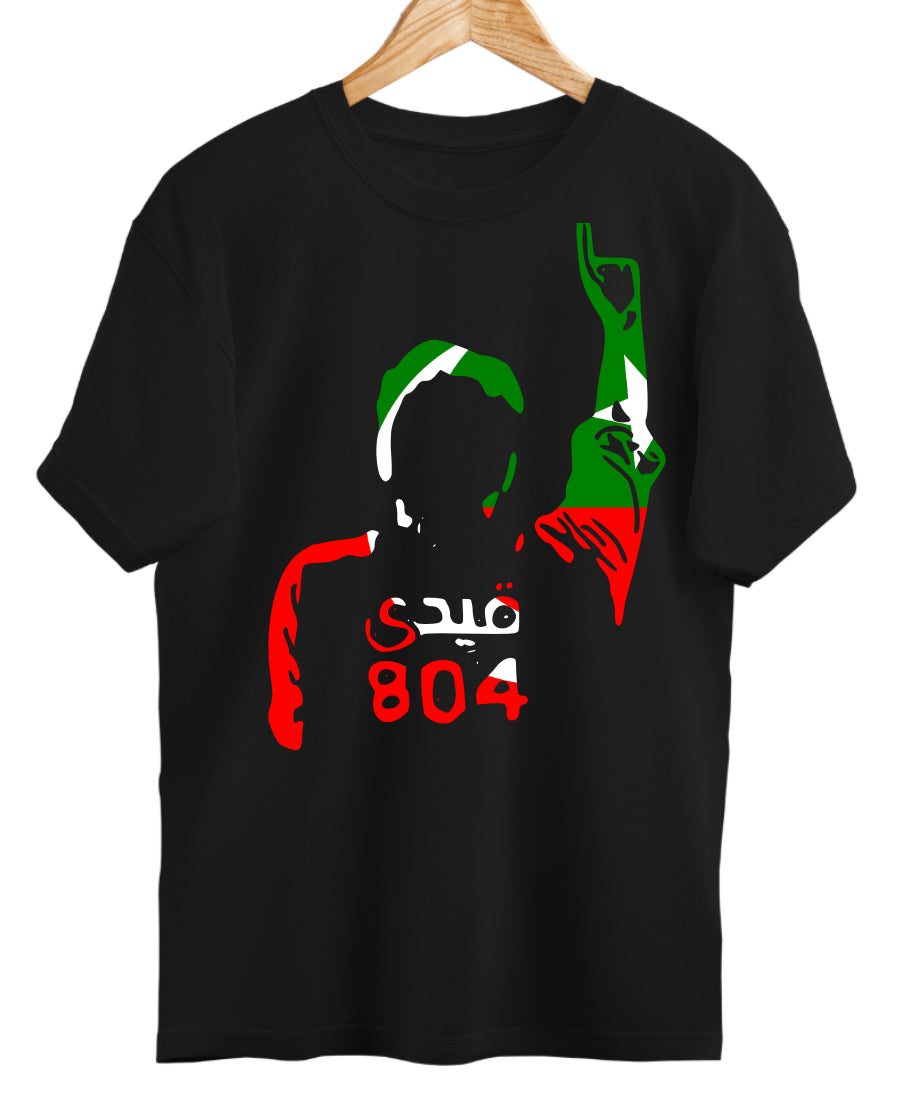 This bold and inspiring t-shirt is more than just a piece of clothing—it's a movement. Featuring the powerful silhouette of a man with his right arm raised high, draped in the iconic red, green, and white *flag of resistance*—complete with the star that symbolizes hope—this design honors the spirit of a leader who ignited a nation.
