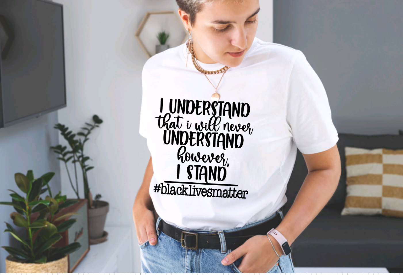 Show your support with this bold, beautiful However, I Stand shirt. Perfect to wear year-round, but designed to make a statement during Black History Month or any time you want to let people know that you stand strong and together with our amazing black history makers.