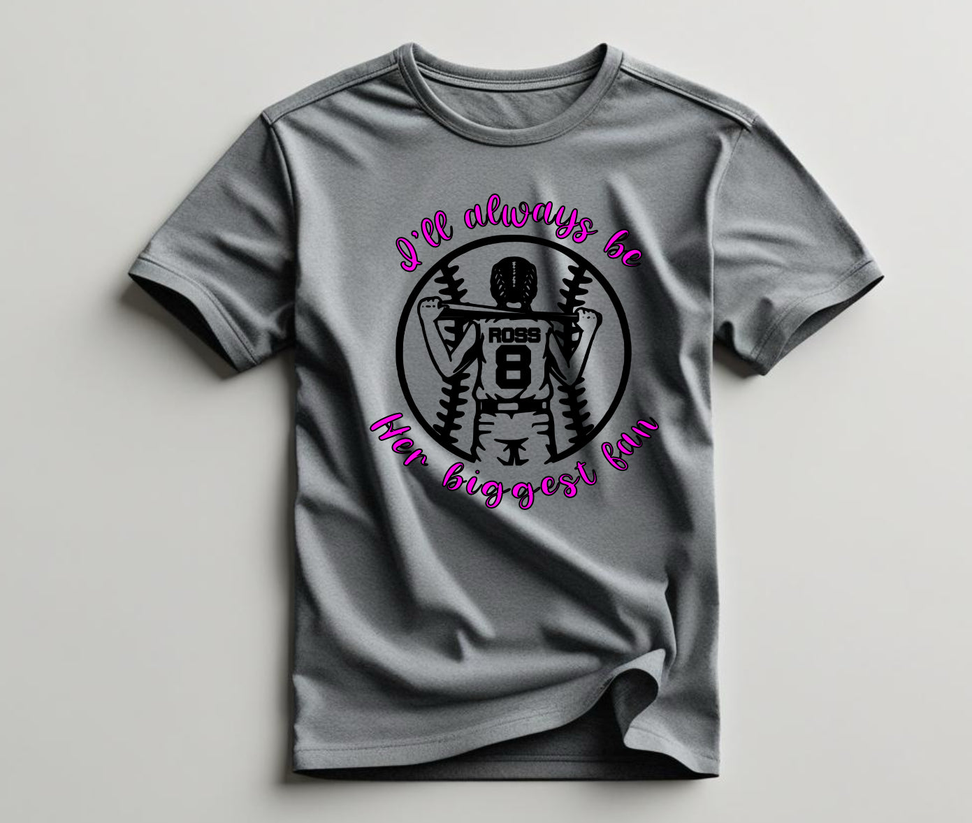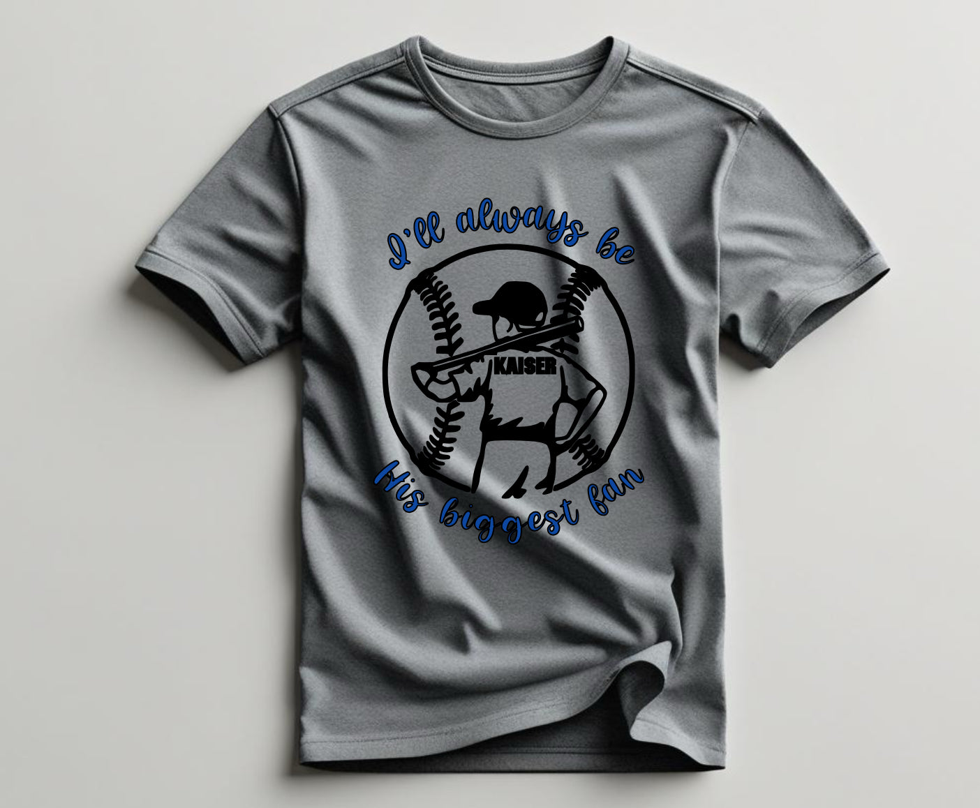 Cheer louder, prouder, and in full color with our "I’ll Always Be Their Biggest Fan!" T-shirt — the perfect way to support your favorite young athlete. This soft, heather grey tee combines comfort with heartfelt personalization, making it a must-have for every proud parent, grandparent, or fan in the stands.