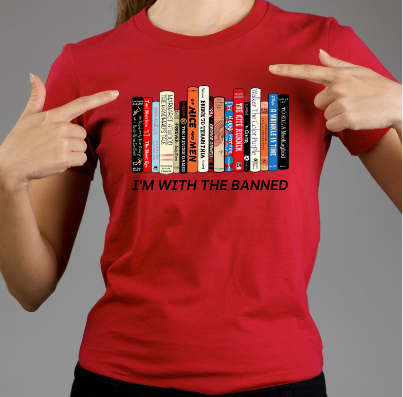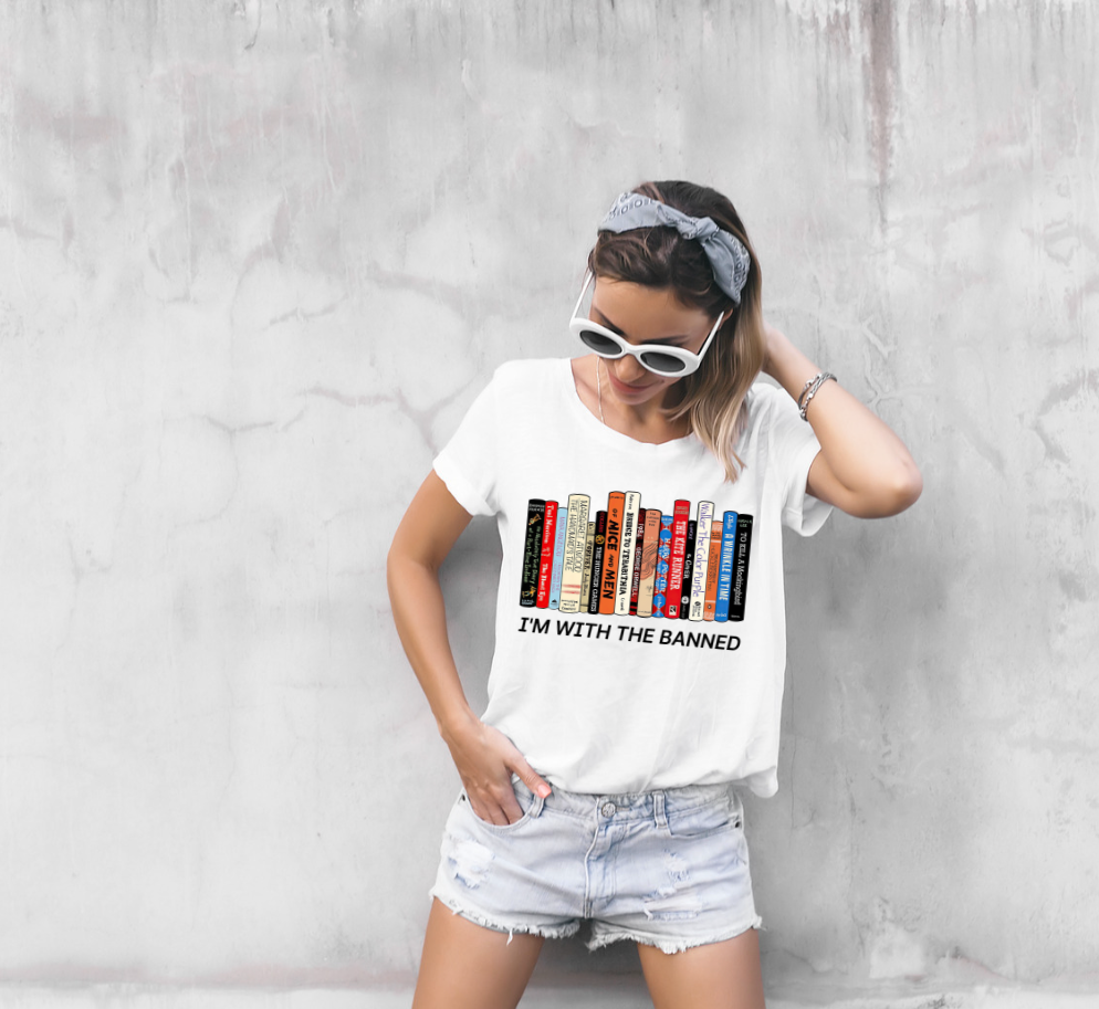 Introducing the "I'm with the Banned" shirt, a bold new design that will make a serious statement wherever you go. In a world where books continue to be banned and censored, this shirt sends a clear message: you stand with knowledge, and you believe that everyone should have access to books and the power they hold.